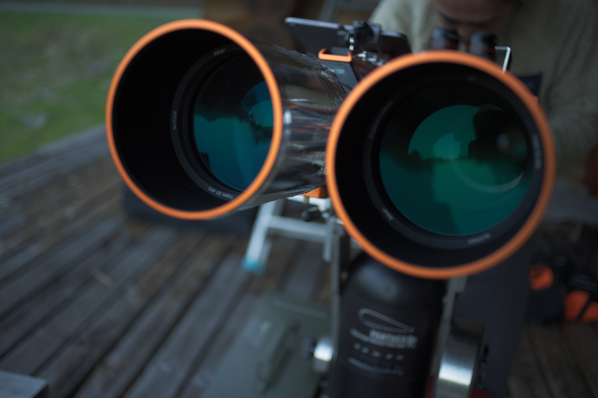 世界中の双眼望遠鏡の写真には、いつも松本さんが開発したEMSが写っているし、世界のどこかで、今夜も誰かがその感動体験に眼を奪われている。僕のこの趣味が今日まで続いているのも、双眼だからだ。